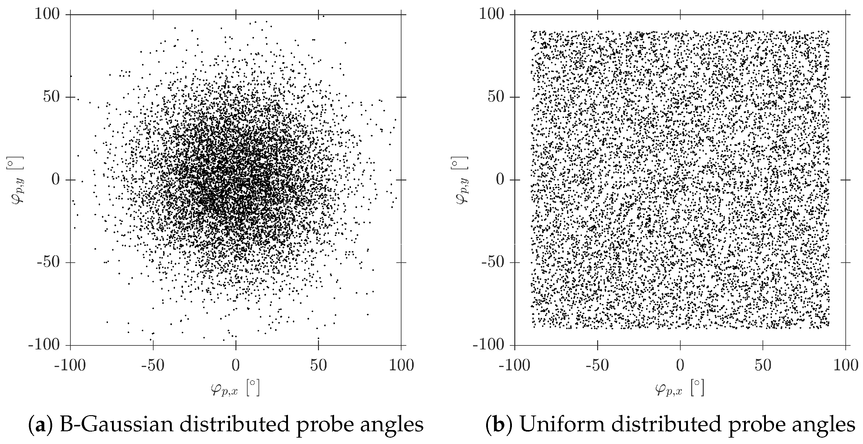 | B—Large probe radius | (any ) | Strong curvature effects; under- or overestimated depending on impact position and probe arrangement. |