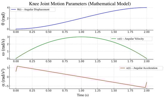 where θ0 is the initial angle, is the final angle, ω(t) is the angular velocity, and α(t) is the angular acceleration. The resulting functions θ(t), ω(t) and α(t) were used as reference signals in bench tests to evaluate the actuator’s accuracy and dynamic performance (ISO 10328:2016, ISO 8549-1:2020 [28,30]).