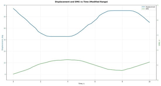 Experimental investigations of the prototype verified the functionality and high reliability of the STM32H-based control system with an AD8232 EMG sensor. Stable operation was achieved with a response latency of 185 ms, meeting physiological requirements and ensuring user comfort. The experimentally measured kinematic and dynamic characteristics matched the computed data with deviations below 2.2%.