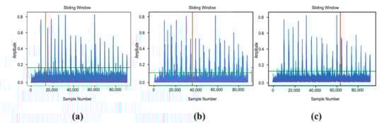 Spectral analysis of the EMG signal using the sliding-window method: (a) early activation; (b) mid-sequence activation; (c) late activation.