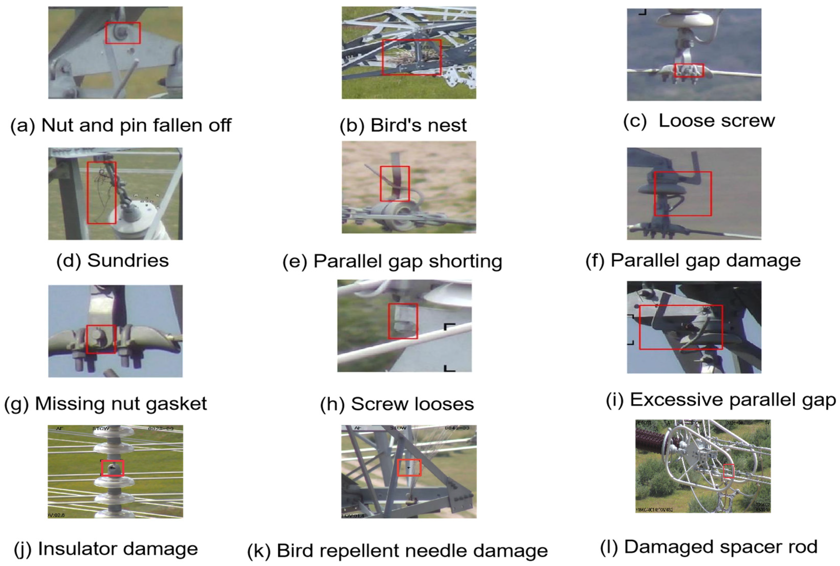 - Ji, Y.; Ma, T.; Shen, H.; Feng, H.; Zhang, Z.; Li, D.; He, Y. Transmission line defect detection algorithm based on improved YOLOv12. Electronics 2025, 14, 2432. [Google Scholar] [CrossRef]