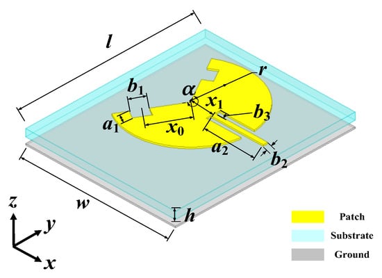 - Lu, W.J.; Li, Q.; Wang, S.G.; Zhu, L. Design approach to a novel dual-mode wideband circular sector patch antenna. IEEE Trans. Antennas Propag. 2017, 65, 4980–4990. [Google Scholar] [CrossRef]