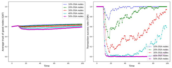 OOA is a strategic attack pattern in which an attacker alternates between providing high-quality and low-quality services to confuse the trust management system and evade detection [62], as shown in Figure 9. This unstable behavior makes it difficult for the system to identify their true intentions, leading to the fact that they can be active in the network for a long period of time and intermittently commit damage.
