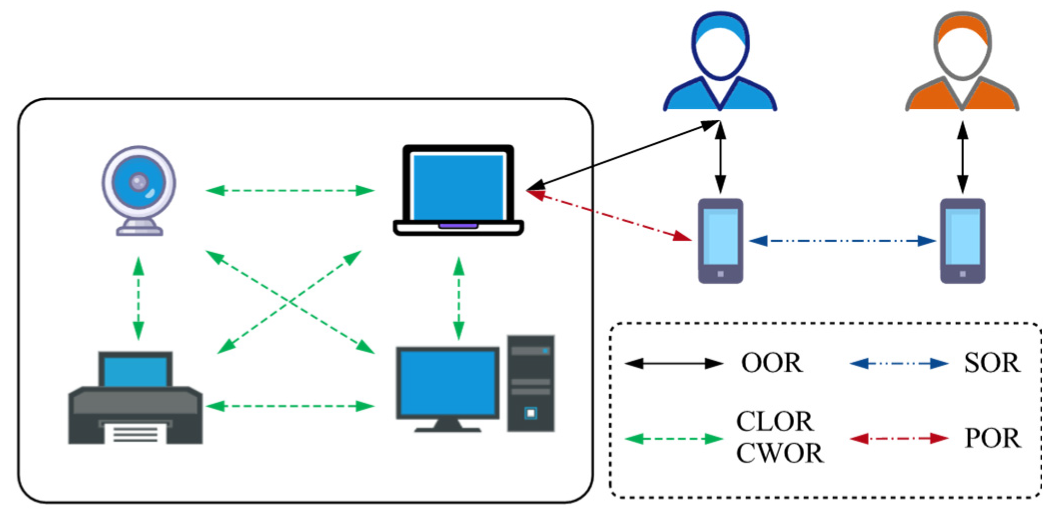 - Ownership Object Relationship (OOR): relationship between objects owned by the same user. The user can jointly manage these objects, enabling cross-device collaboration and enhancing interconnectivity among them.