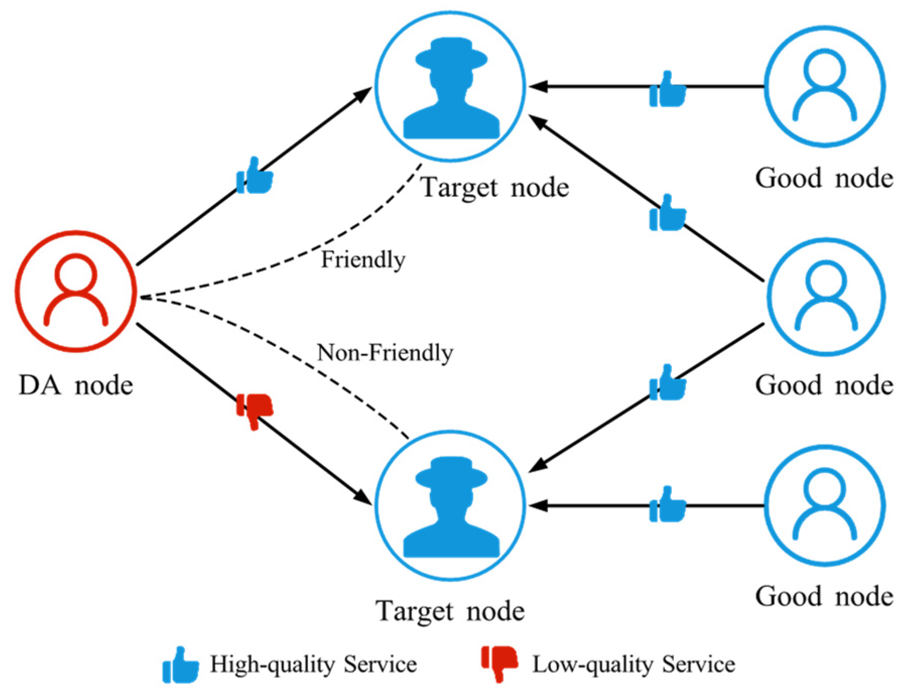 - Global: Global trust, also known as reputation, is usually accumulated and propagated through the interaction of multiple nodes.