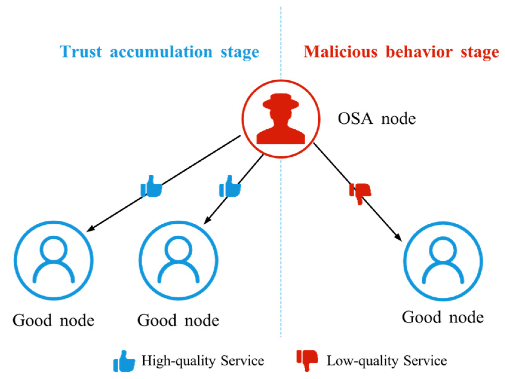 | OSA | Context-dependent service interactions | M | L | H | Context-aware trust updates; Trust prediction and early alerts; |