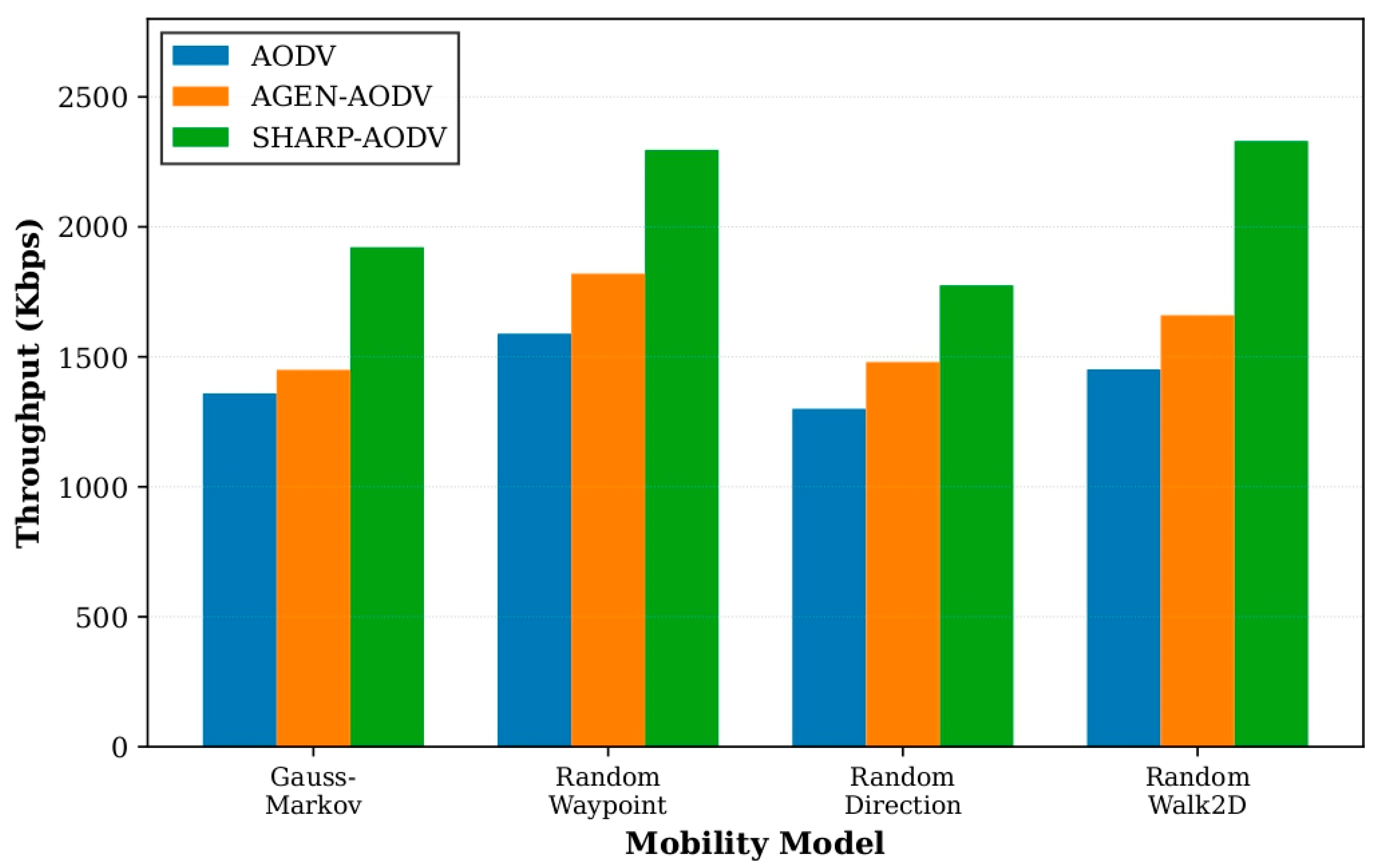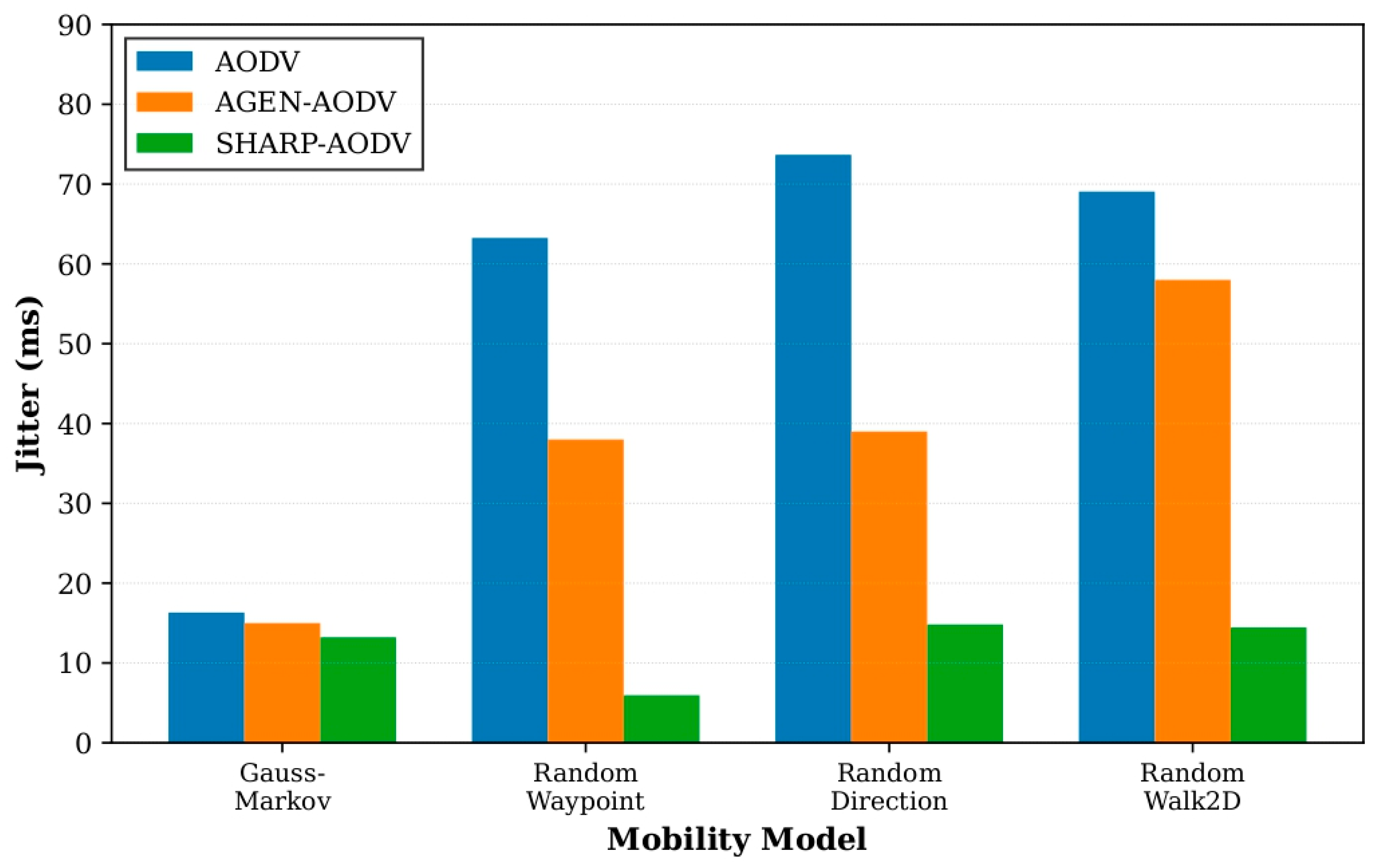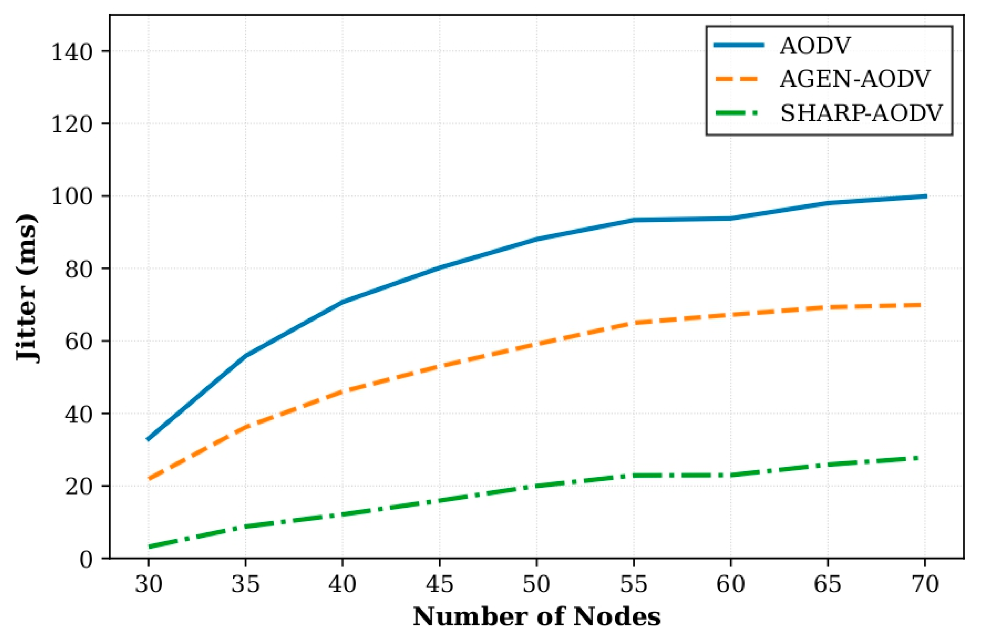 - Moreover, by lowering control overhead and selecting energy-efficient routes, SHARP-AODV significantly extends AAV autonomous operation by an estimated 15–25%, which is especially valuable for large-scale, long-duration deployments such as environmental monitoring, disaster management, and augmentation of mobile network infrastructure.