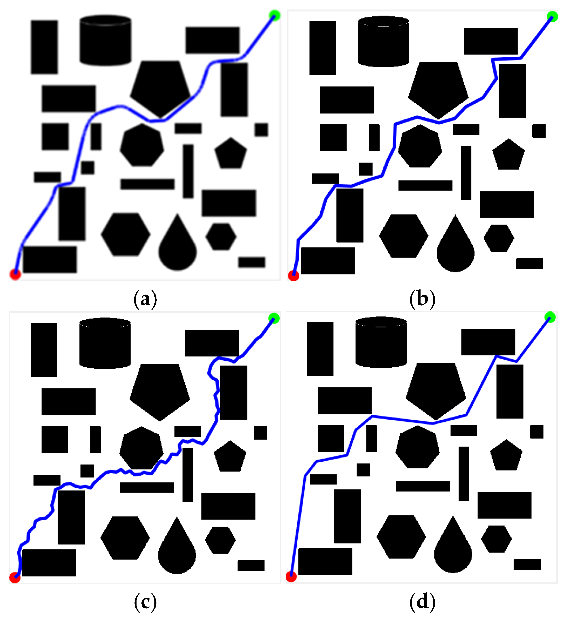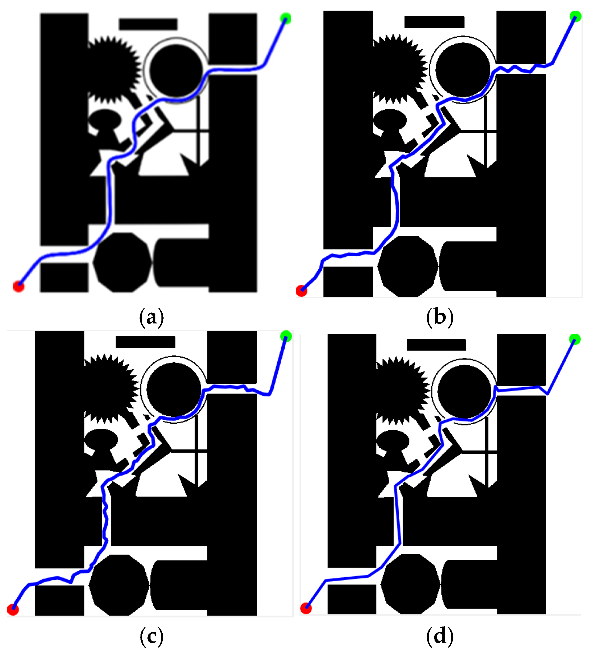 - Path Smoothing: Apply cubic B-spline fitting (Section 3.6, Equations (13) and (14)) to generate the final smooth path .