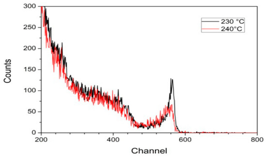 Comparison between PHS recorded at 230 °C and 240 °C. The degradation of the alpha peak is clear [22].