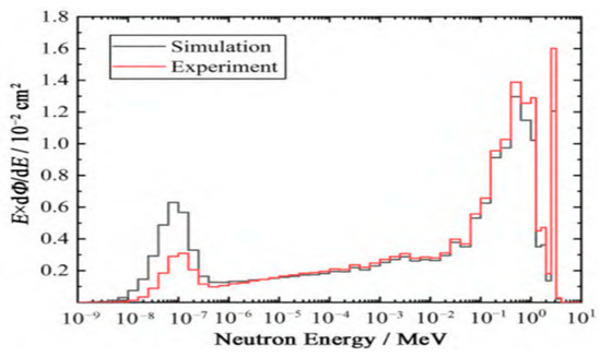 Comparison between simulated and experimental energy spectra at the measurement position [47].