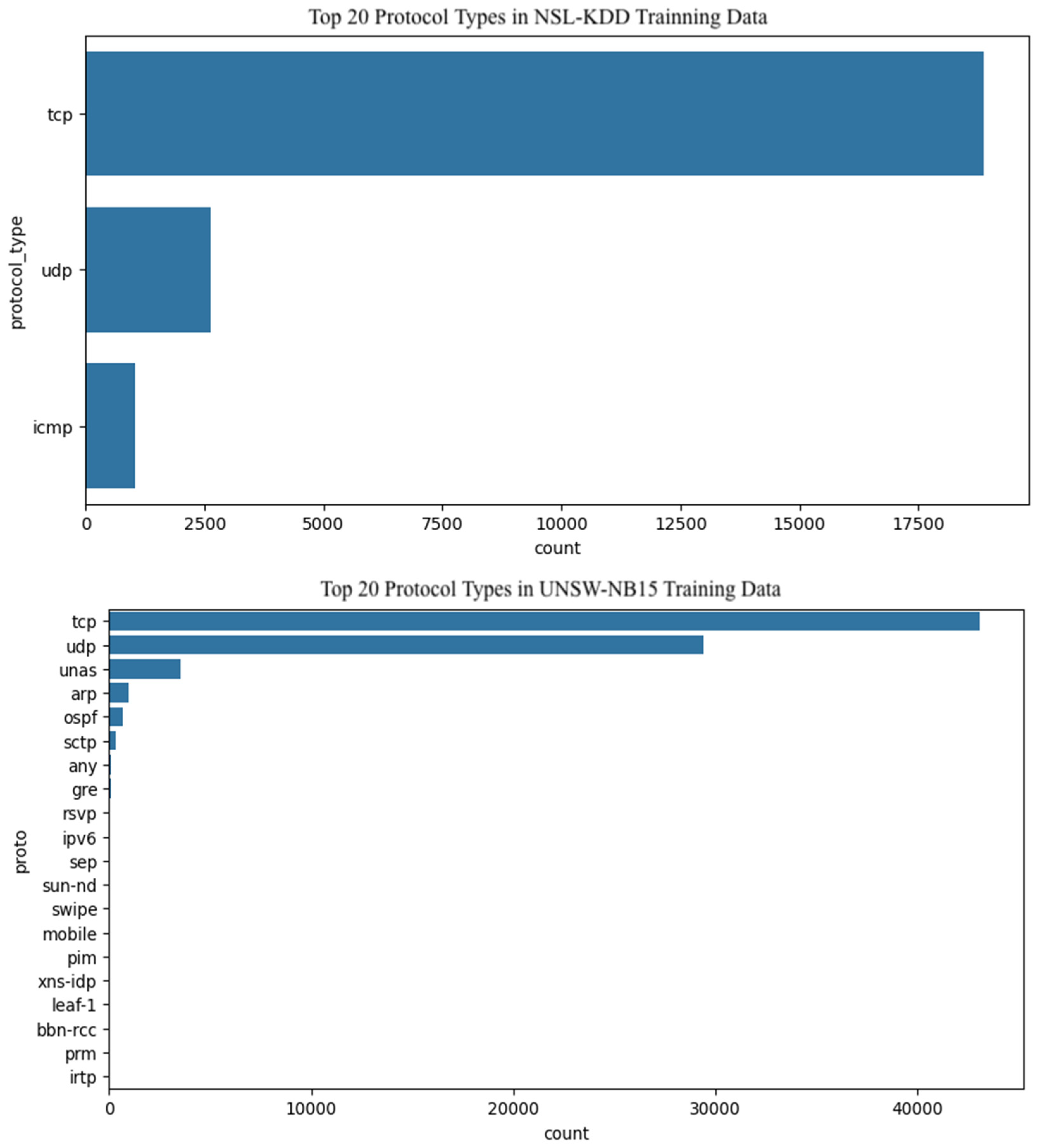 Both datasets encompass a wide spectrum of attack categories across multiple protocols and services. However, the UNSW-NB15 dataset is more refined in its labeling structure, representing attack traffic as ‘1’ and benign traffic as ‘0’. In contrast, the NSL-KDD dataset lacks this binary classification. To enable consistent training and testing, we manually assigned ‘0’ to normal instances and ‘1’ to all attack types, effectively transforming the labels into a binary format. This process aligns with the principles of one-hot encoding for binary classification tasks.