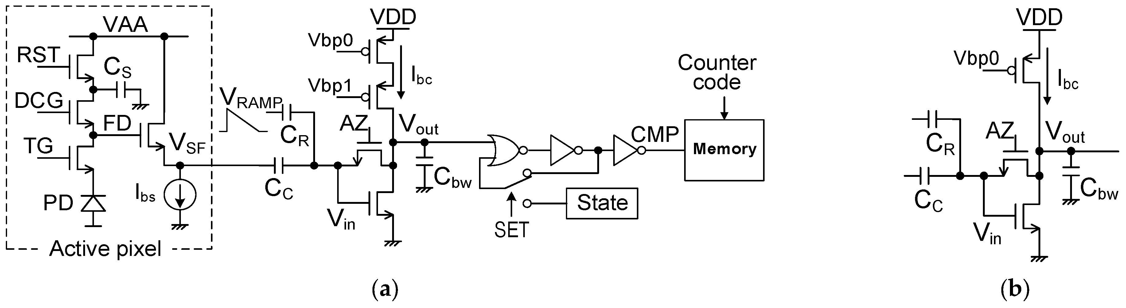 4.1. Pixel Circuit in the Digital-Pixel Sensor
