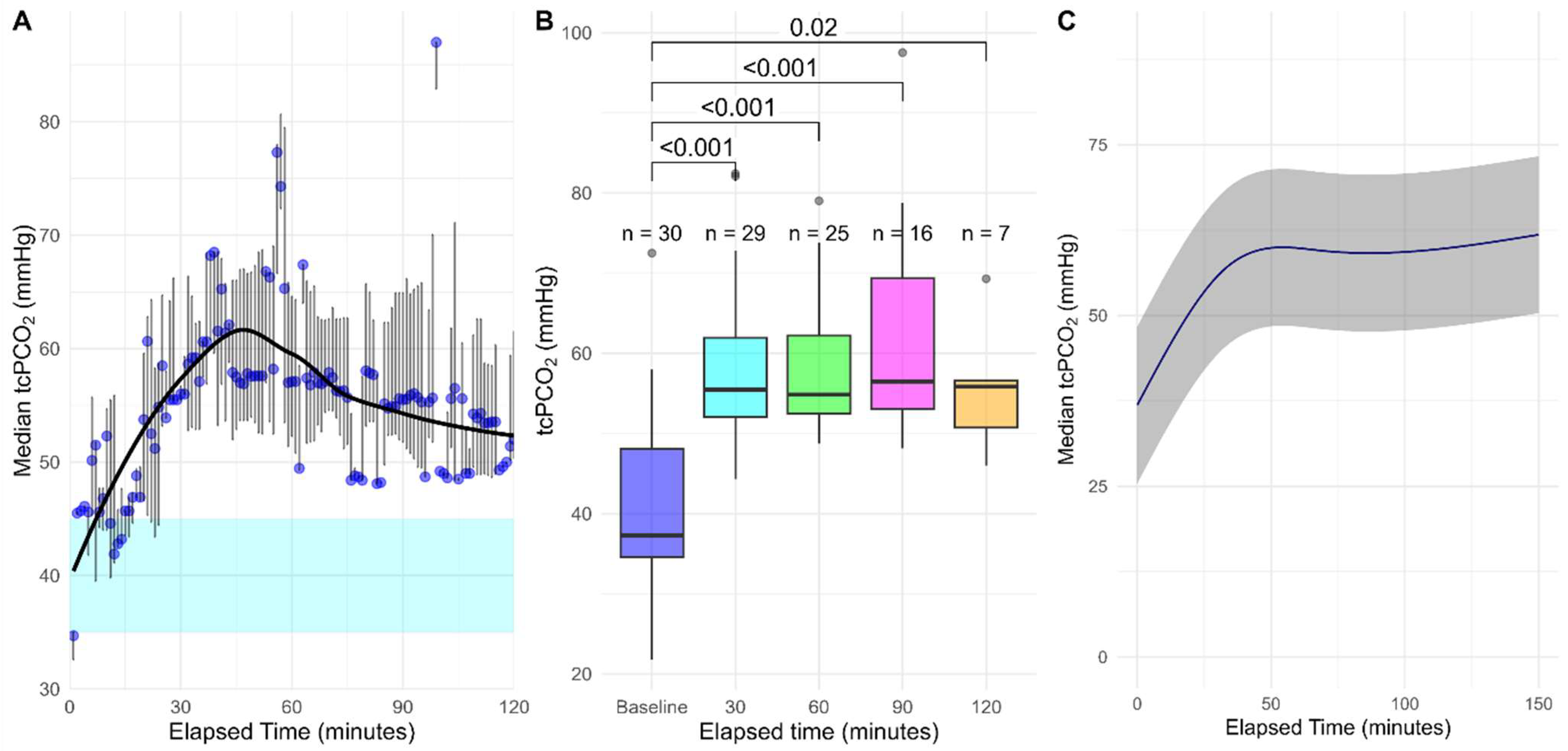 | tcPCO2 (mmHg) | ||||