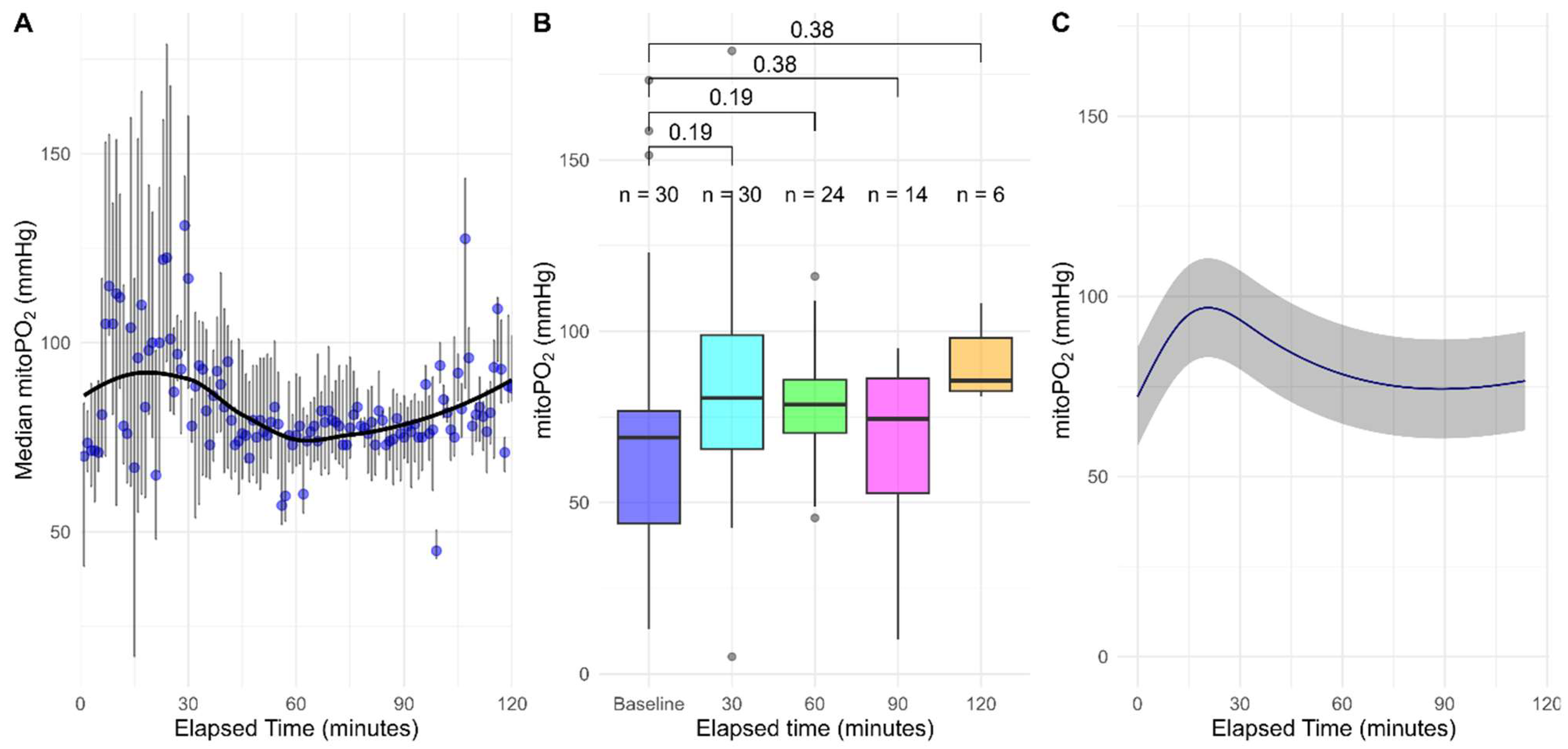 | Adverse events | 2 (6.7%) | mitoPO2 measurement time (min) | 104 (71–116) |