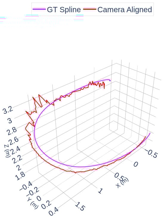 With typical flight speeds of 1–1.5 m/s in our experiments, the estimated offset of s therefore corresponds to a spatial shift of roughly 0.5–0.7 m along the drone’s path. This magnitude is consistent with the order of the spatial discrepancy observed between radar and camera trajectories before temporal alignment.Note that this temporal-offset-induced shift is not directly visible in the final aligned figures, since they already depict the trajectories after applying the optimal and the rigid-body transform.
