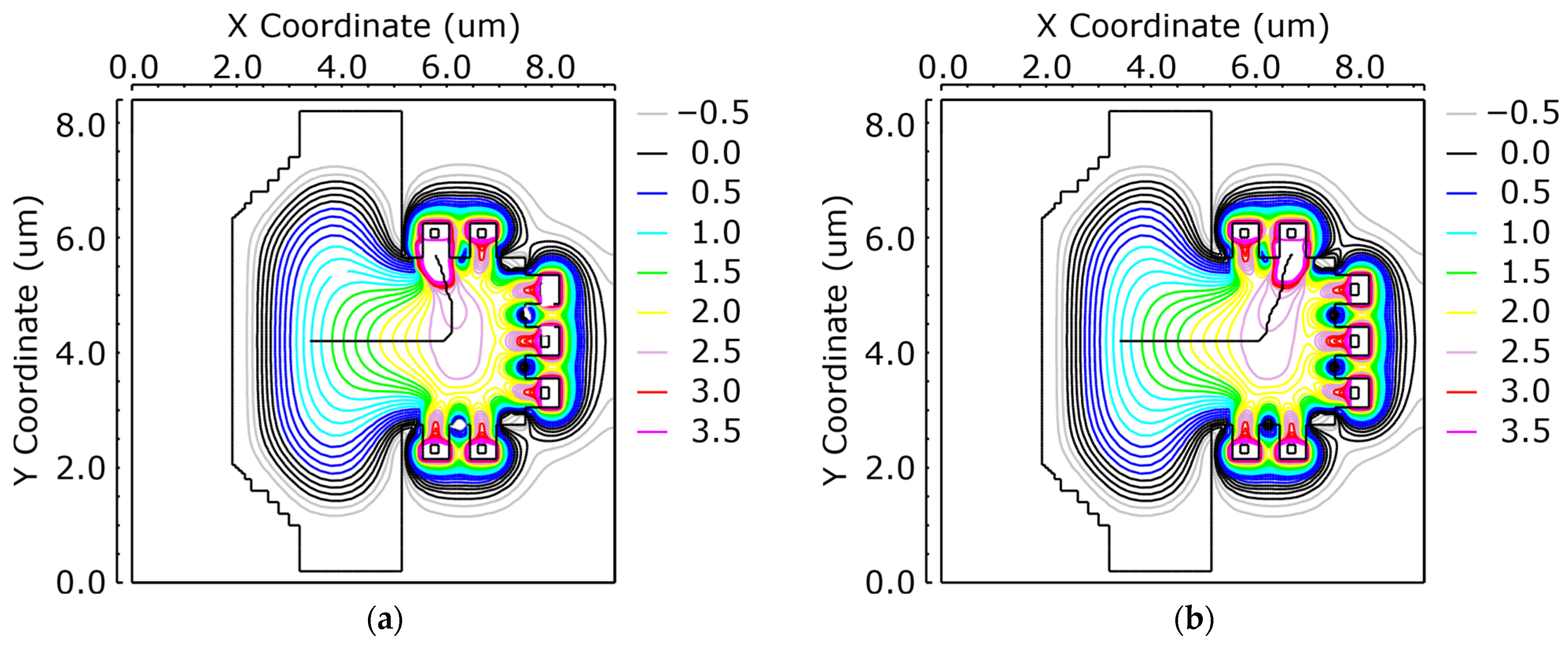 - Sze, S.M. Semiconductor Devices: Physics and Technology, 2nd ed.; John Wiley & Sons, Inc.: Hoboken, NJ, USA, 2008. [Google Scholar]