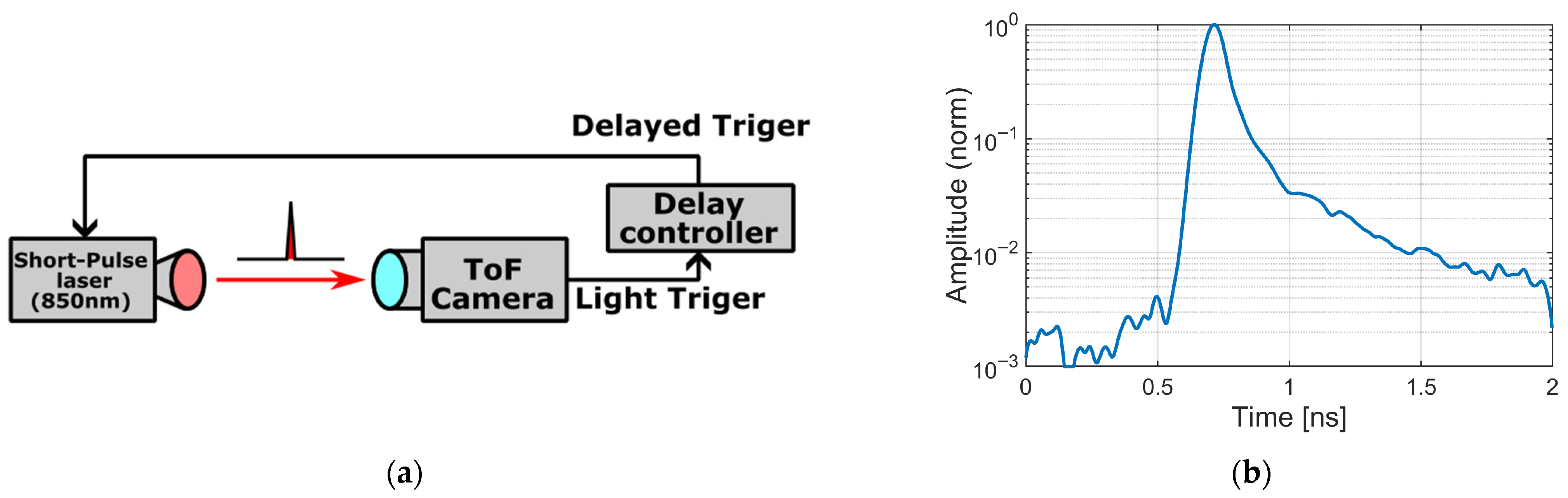 - Keel, M.-S.; Kim, D.; Kim, Y.; Bae, M.; Ki, M.; Chung, B.; Son, S.; Lee, H.; Jo, H.; Shin, S.-C.; et al. A 4-tap 3.5 µm 1.2 Mpixel indirect time-of-flight CMOS image sensor with peak current mitigation and multi-user interference cancellation. In Proceedings of the 2021 IEEE International Solid-State Circuits Conference (ISSCC), San Francisco, CA, USA, 13–22 February 2021; pp. 106–108. [Google Scholar] [CrossRef]