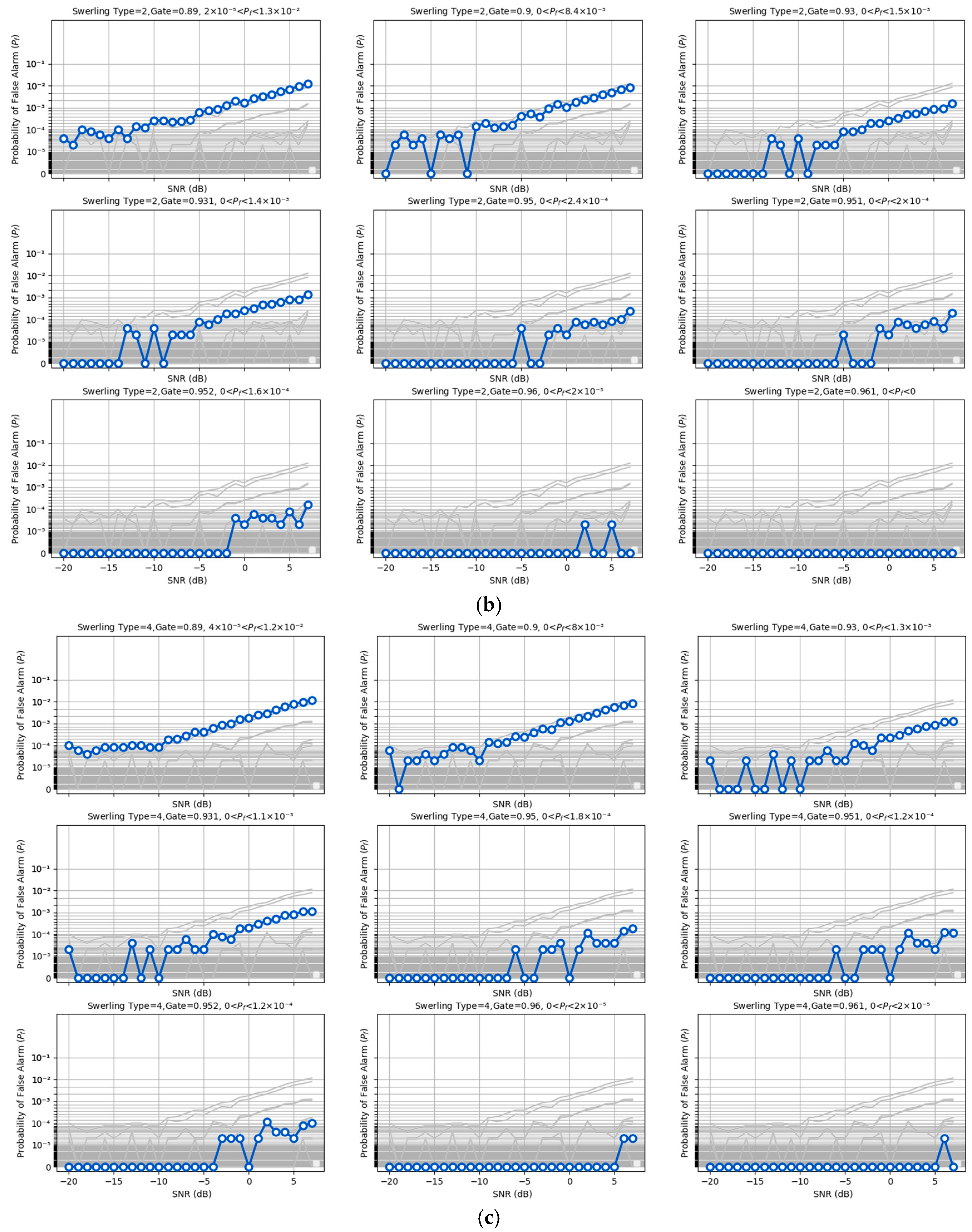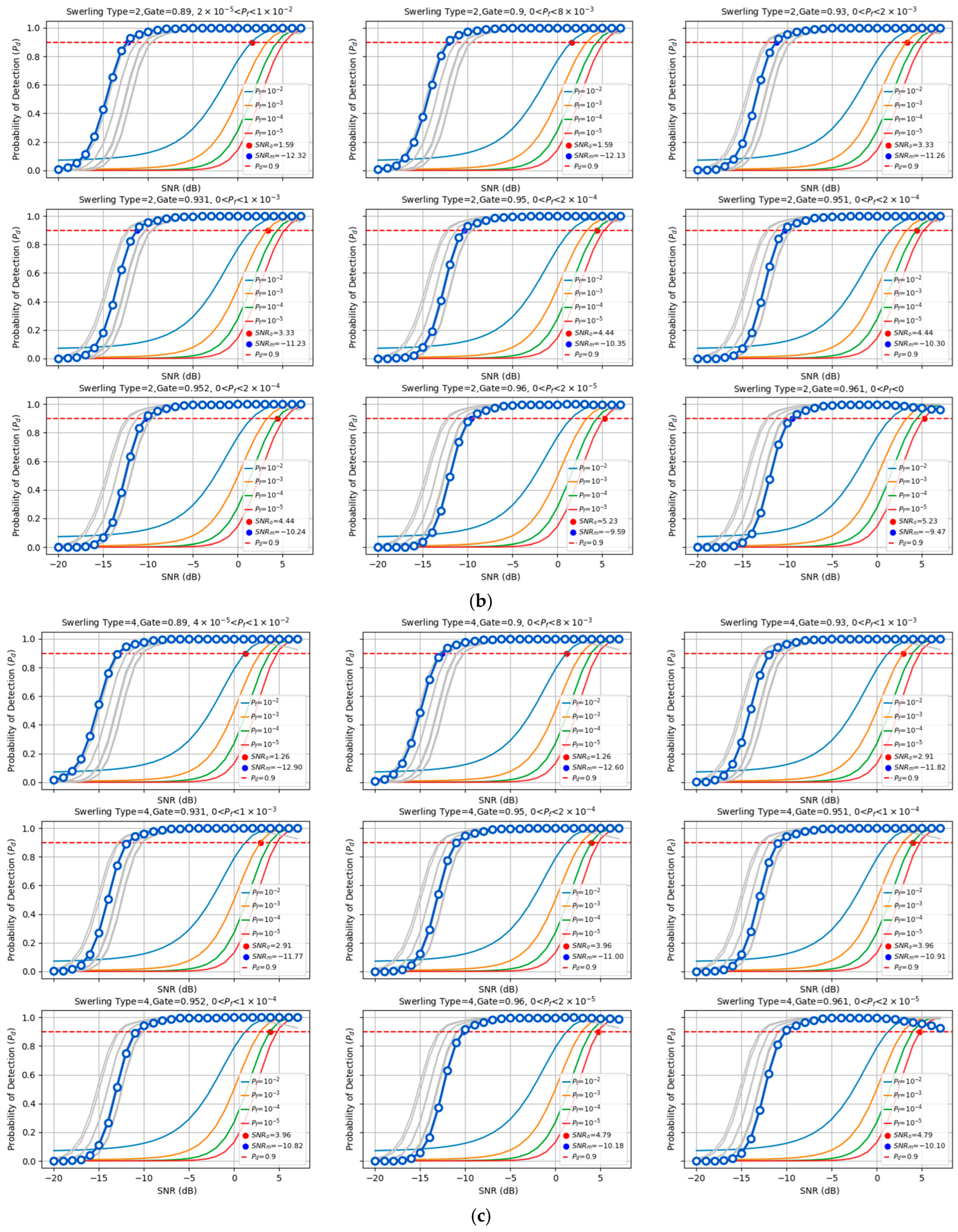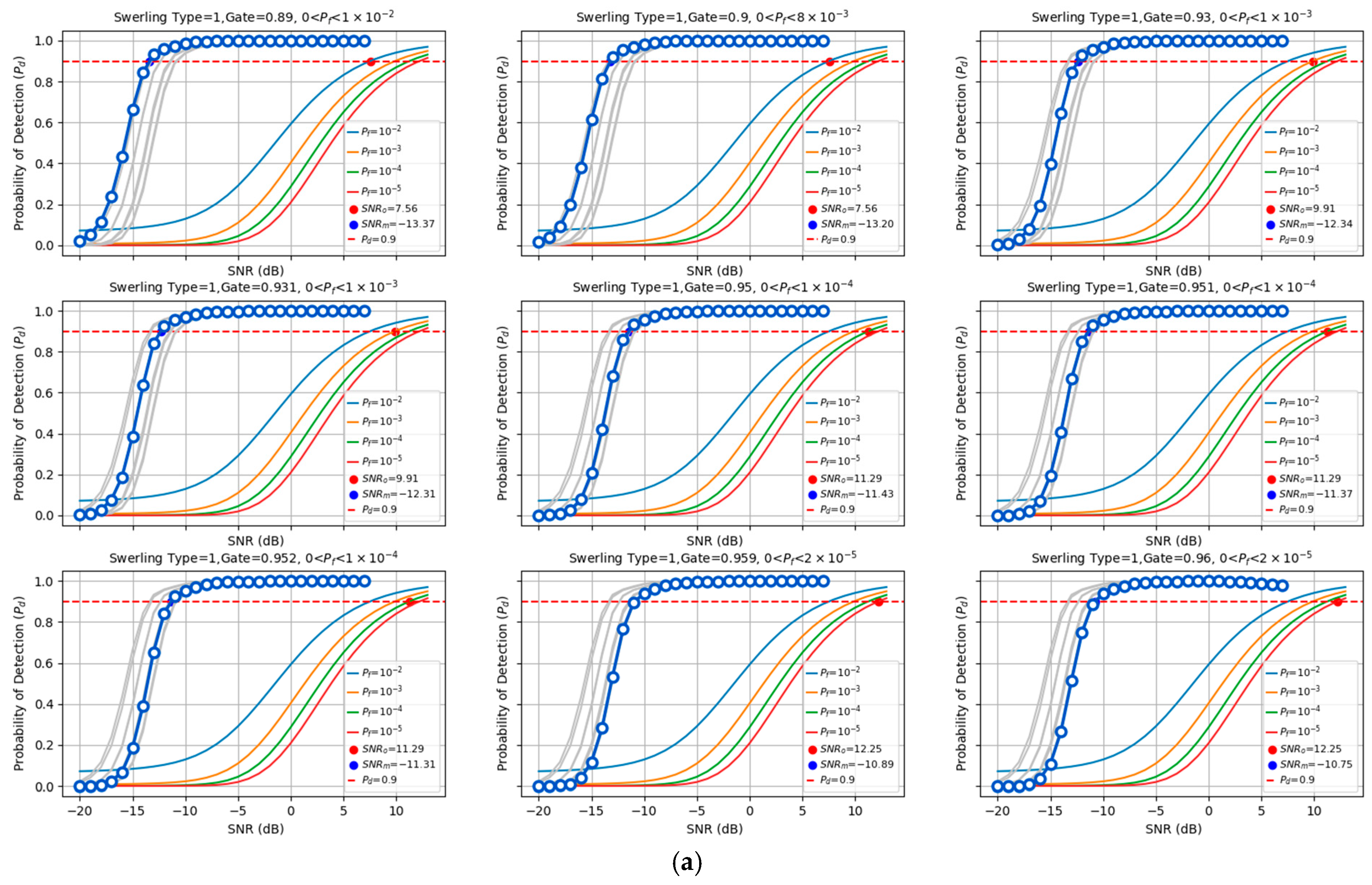 The fluctuation characteristics of the target RCS were modeled using the Swerling framework. Considering that slow fluctuations exhibit stability within a coherent pulse interval (CPI) but vary across scans (between different CPIs), the detection process focuses on accumulation within a single CPI. Consequently, scenarios involving slow-fluctuation targets (Swerling I and Swerling III) were consolidated for analysis.