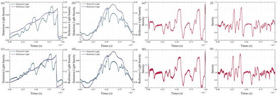 (a–d) Detection light and reference light signals. (e–h) Absorption spectral signals.