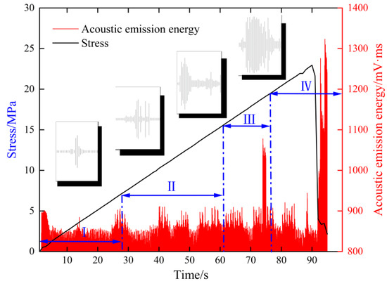 Stress and AE energy vs. the time curve.