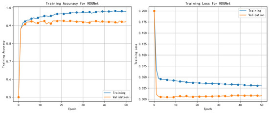 RDGNet training accuracy and loss curves.