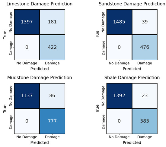 These results (Table 5 and Figure 12, Figure 13, Figure 14 and Figure 15) demonstrate that with only a minor and physically meaningful extension of the output layer, the original RDGNet architecture can effectively disentangle contributions from multiple overlapping lithologies and independently predict the damage state of each rock type, directly addressing practical monitoring needs in layered surrounding rocks.