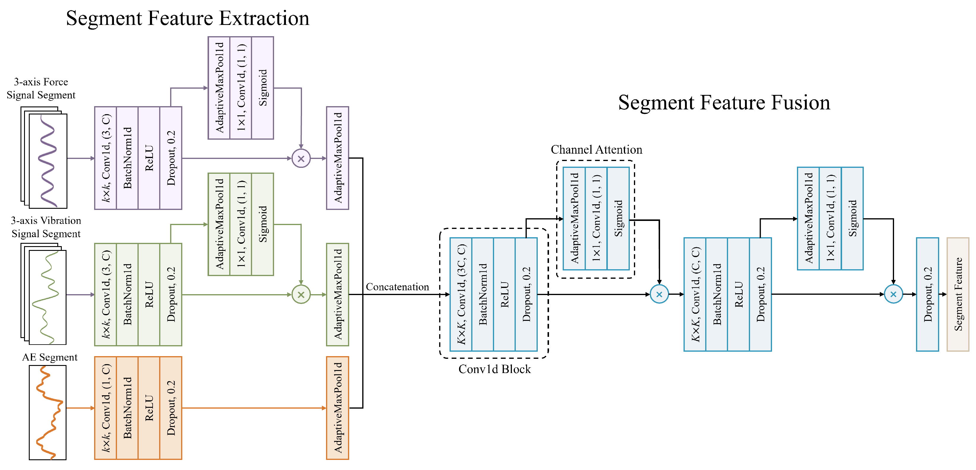 | 5 | Force Signal Branch | Conv1d Block | [B × 50, 3, 1000] | [B × 50, 32, 1000] | 3 | 32 | 3 | 1 |
