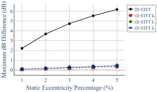 Comparison of Maximum dB Difference with Respect to Static Eccentricity in 1D and 2D STFT Analyses.