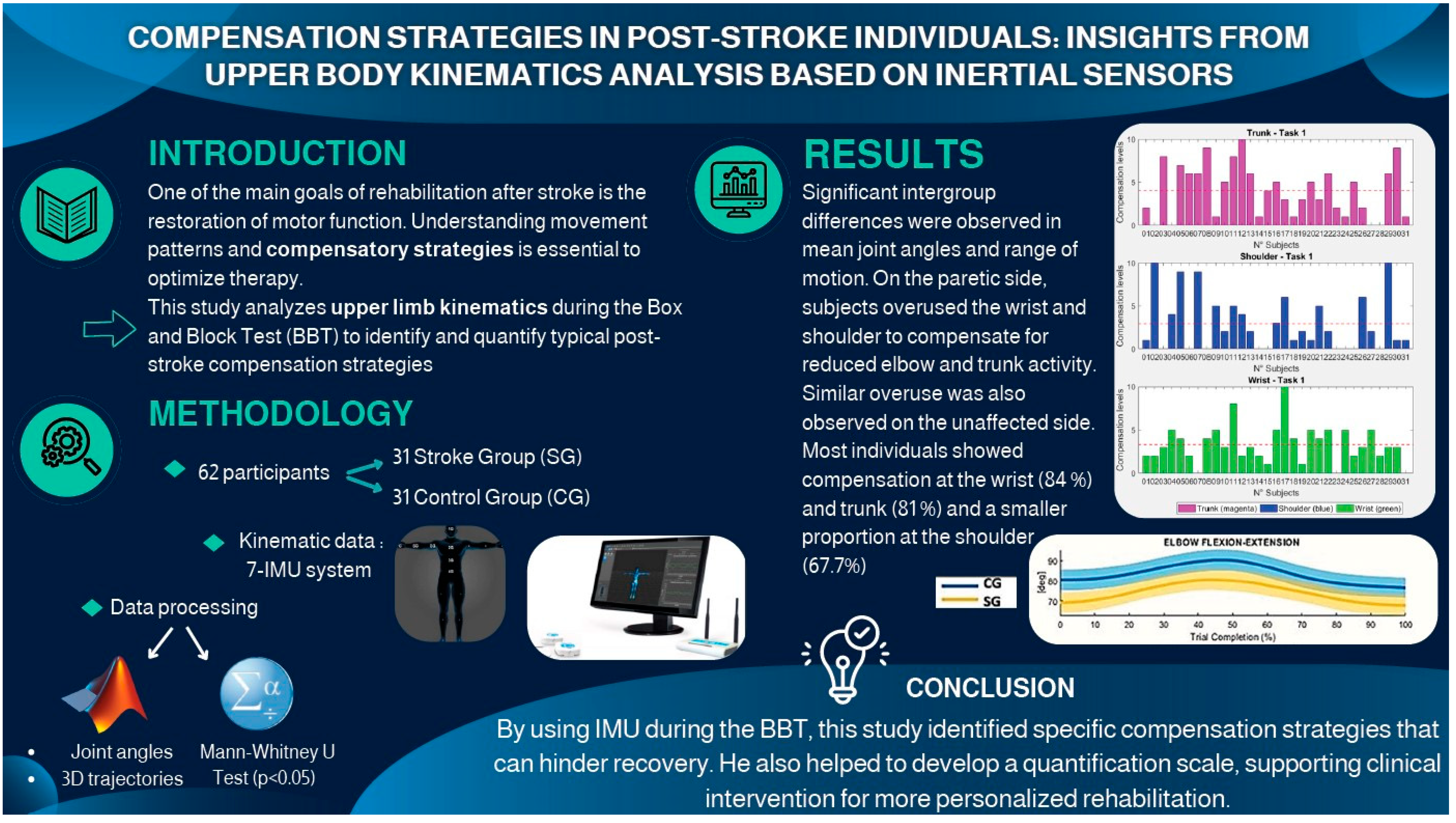 - The use of inertial measurement units (IMUs) during the Box and Block Test enabled detailed kinematic analysis and the identification of typical compensation strategies in post-stroke individuals.