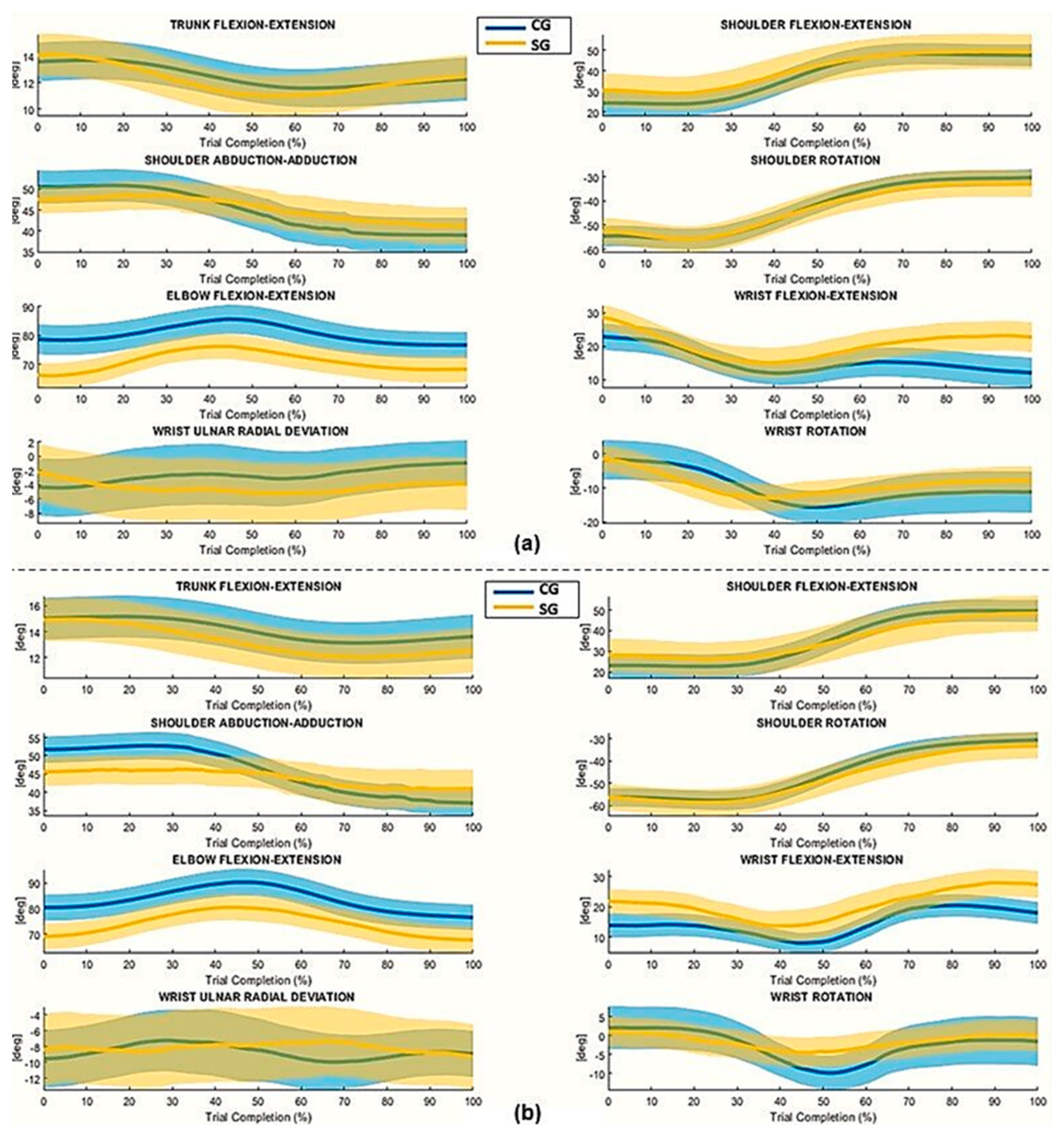 | Joint Angles | Group | Mean Angle | ROE | Mean Angle | ROE | |