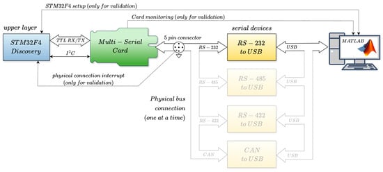 Although Ethernet-based protocols currently dominate industrial automation networks, and the USB (Universal Serial Bus), introduced in 1996, has become the de facto standard for computer and peripheral connectivity, many actual devices and subsystems in large-scale automation systems still rely on legacy serial interfaces such as RS-232, RS-485, RS-422, and CAN. For instance, ref. [8] employs RS-232 and RS-485 for the motion monitoring and control of a 6DoF robotic platform. In [9], RS-485 enables communication with intermediate nodes for low-resource IoT devices. RS-232 and RS-485 are used in [10] as a low-cost communication solution for a remotely operated underwater vehicle. In [11], machine learning techniques are proposed to detect attacks on Modbus over RS-485 links. RS-422 is utilized in [12] to connect the flight control computer and telemetry with the control system of a hybrid vehicle. CAN-based networks are used in [13] for climate monitoring in agricultural systems and in [14] to integrate sensors, actuators, and controllers in mobile robotics.