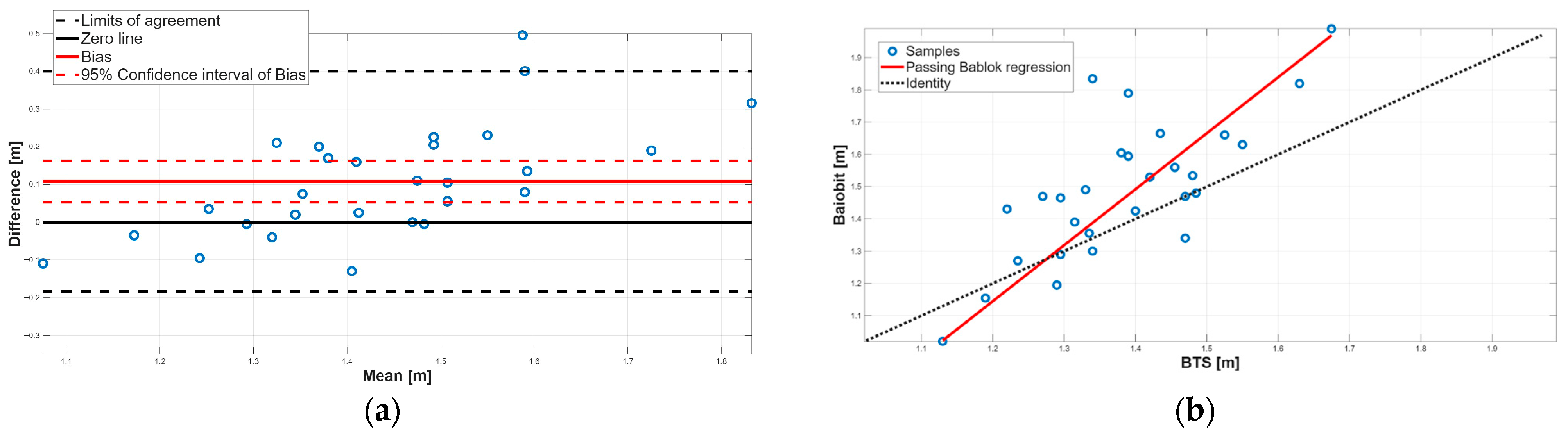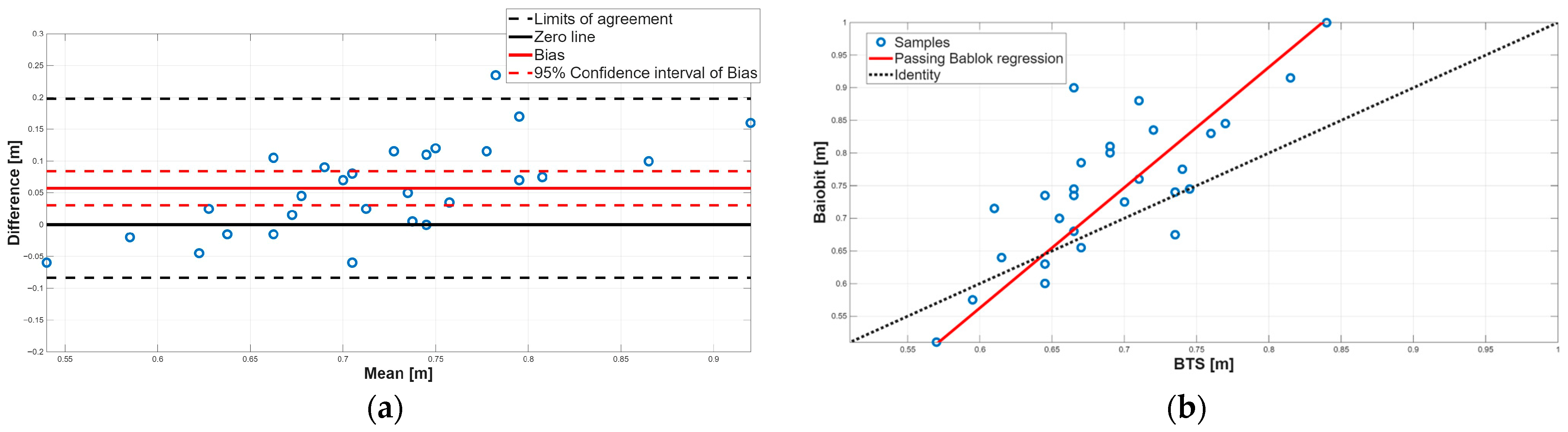 - Giavarina, D. Understanding Bland Altman analysis. Biochem. Medica 2015, 25, 141–151. [Google Scholar] [CrossRef]
