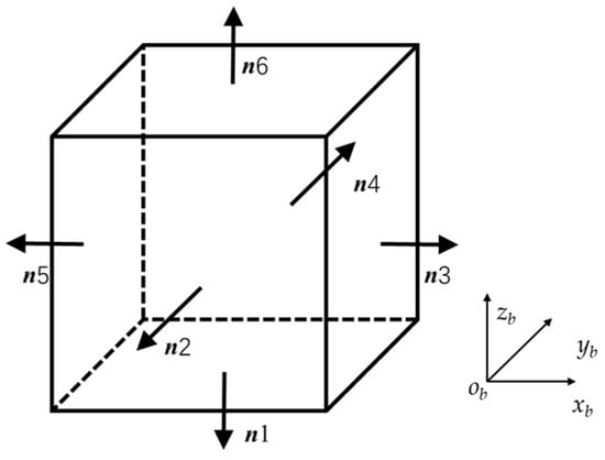 The outward normal vectors of the hexahedron surfaces in the hexahedron coordinate system are defined as shown in Equation (1).