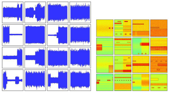 Appropriate data augmentation strategies are crucial for expanding the diversity of task datasets, as they enable the model to capture general cognitive patterns from the data, thereby significantly improving the robustness and generalization ability of the model. Data augmentation strategies must be tightly coupled with the characteristics of the dataset and designed based on real-world properties; otherwise, they may backfire and impair the performance of the model. Common types of data augmentation include geometric transformations, color space transformations, and mixed transformations. In general object detection tasks, CenterNet applies a series of data augmentation techniques including random flip, random scaling, cropping, and color jittering to the COCO2017 dataset. This study is mainly carried out on the WBSig53 dataset. The time-domain waveforms and STFT example diagrams of the signals in the dataset are shown in Figure 1.