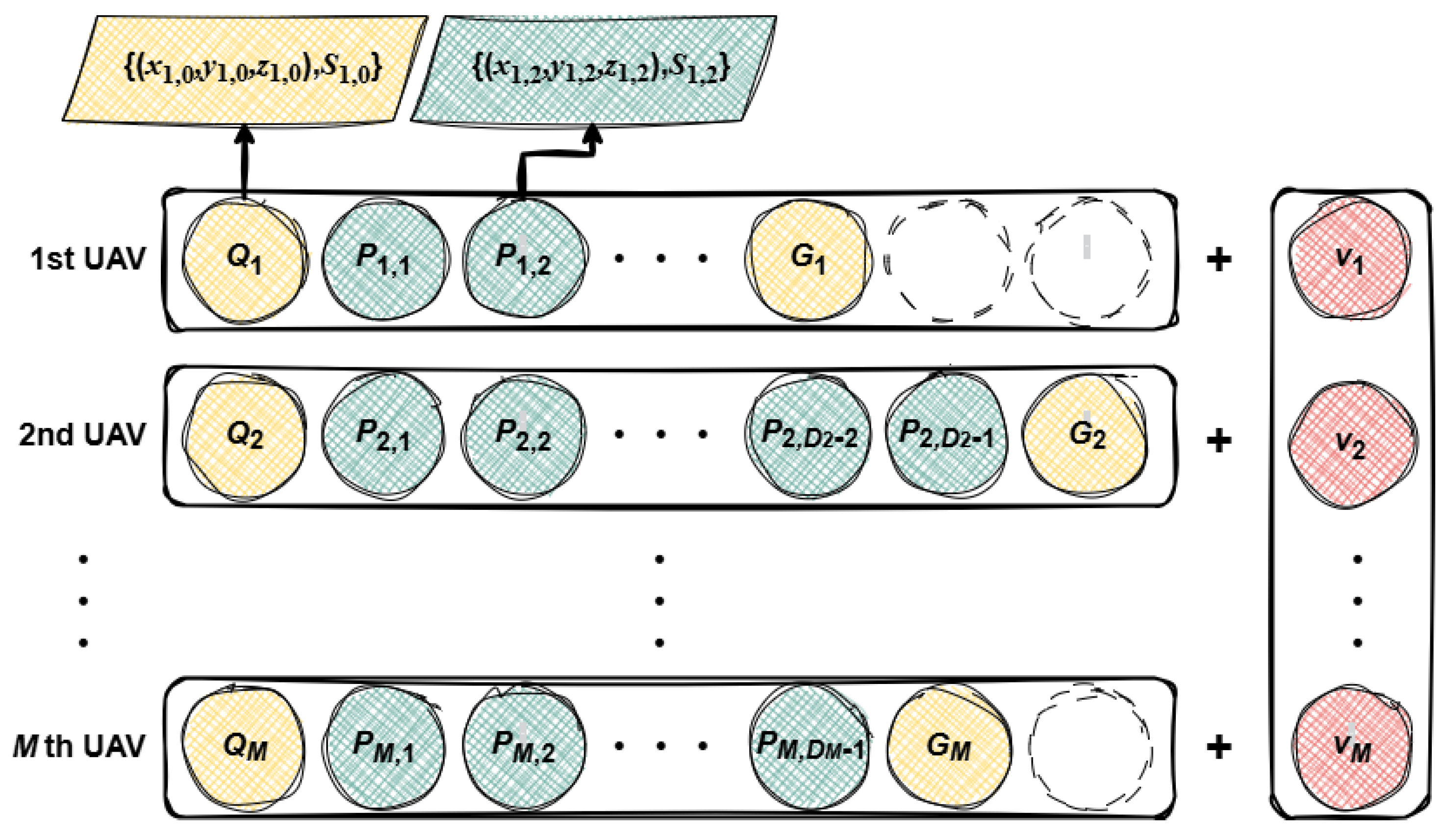 For the m-th UAV, assuming that its trajectory length is L m ( m = 1 , 2 , , M ), its corresponding time constraint can be designed through the maximum and minimum arrival time as