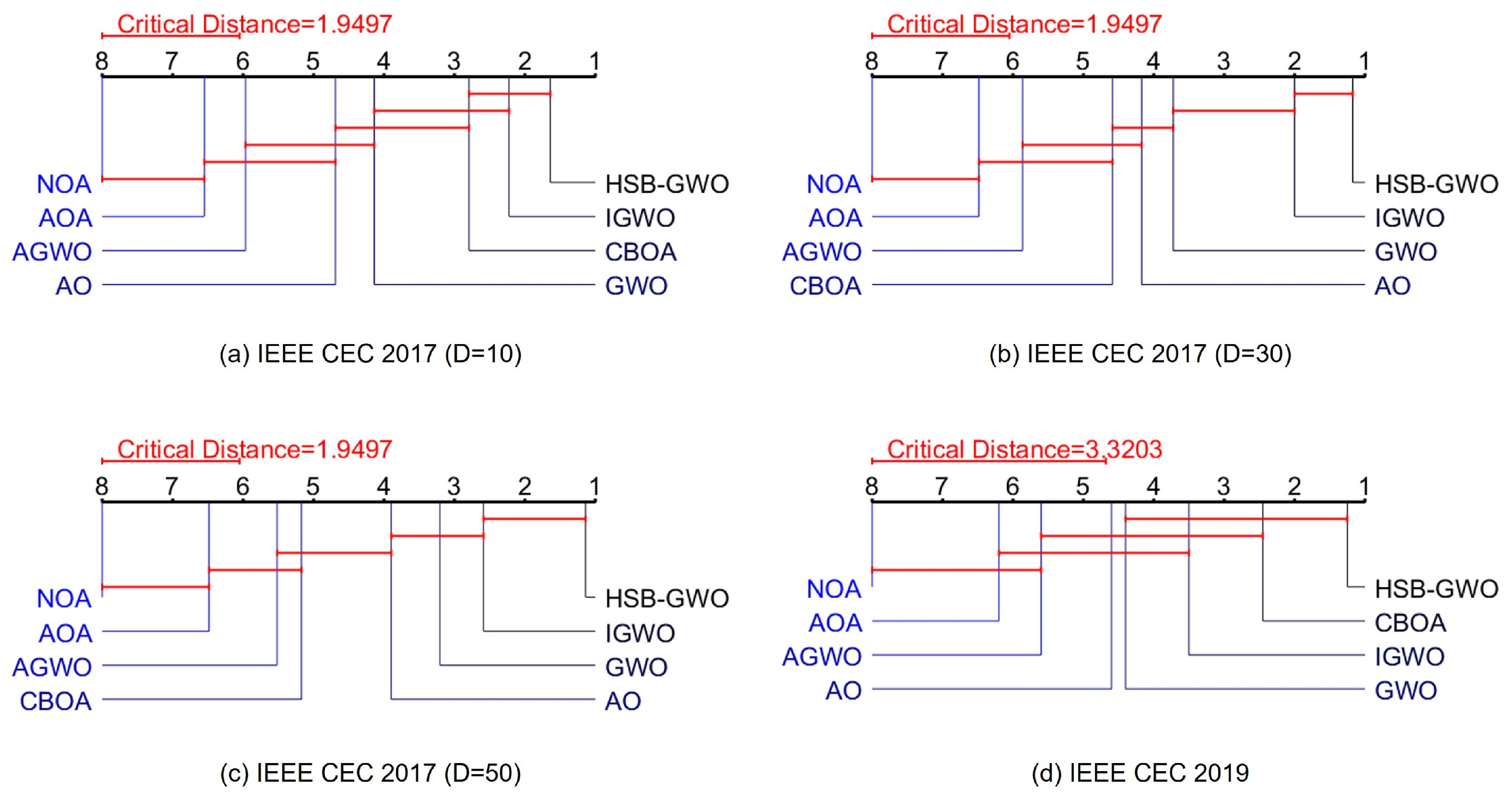 GWO, introduced by Mirjalili et al. [20], is inspired by the social hierarchy and cooperative hunting behavior of grey wolves. GWO emulates the leadership structure within a wolf pack, typically categorized into four levels, alpha ( α ), beta ( β ), delta ( δ ), and omega ( ω ), in which the α , β , and δ wolves, representing the fittest solutions, are regarded as leaders to guide the search process of the ω wolves that follow them. In [32], it is suggested that GWO is a variant algorithm of PSO (similar to SPSO-2011). Therefore, the shortcomings of GWO in search performance can reflect the common problems of PSO-based metaheuristic algorithms, which is the focus of this work to solve.