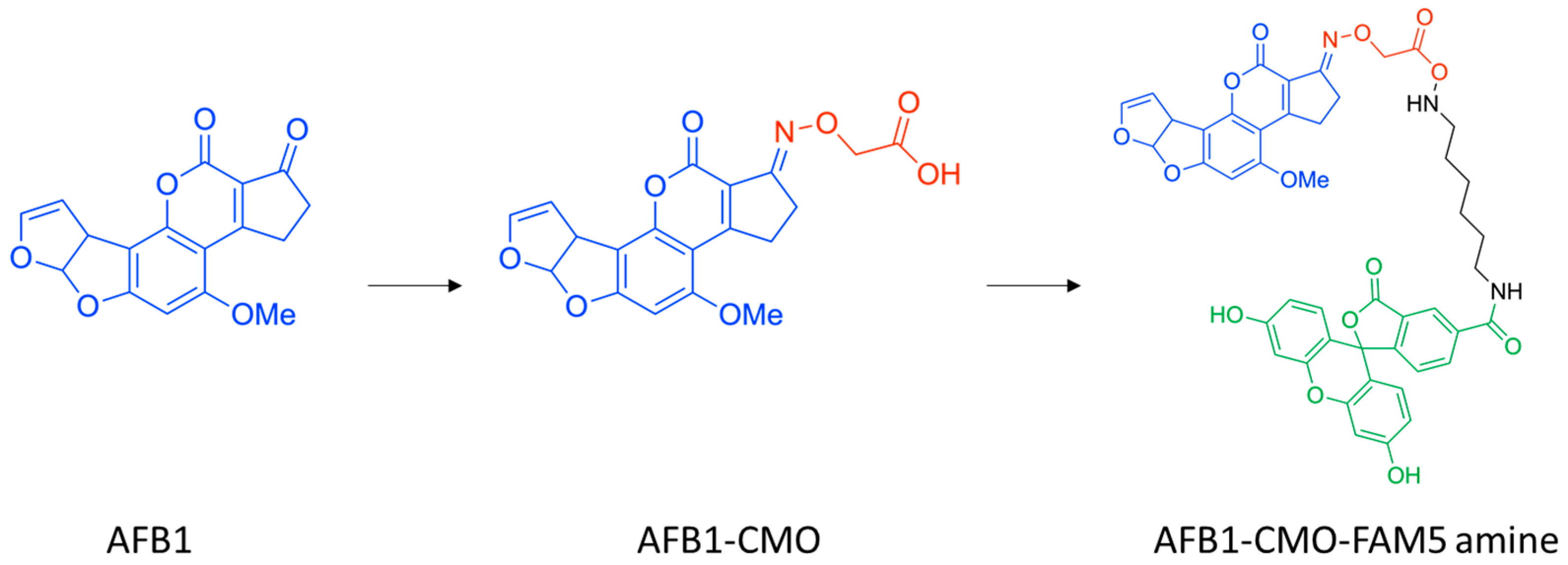 3.1. Synthesis and Characterization of AFB1-5-FAM Conjugate