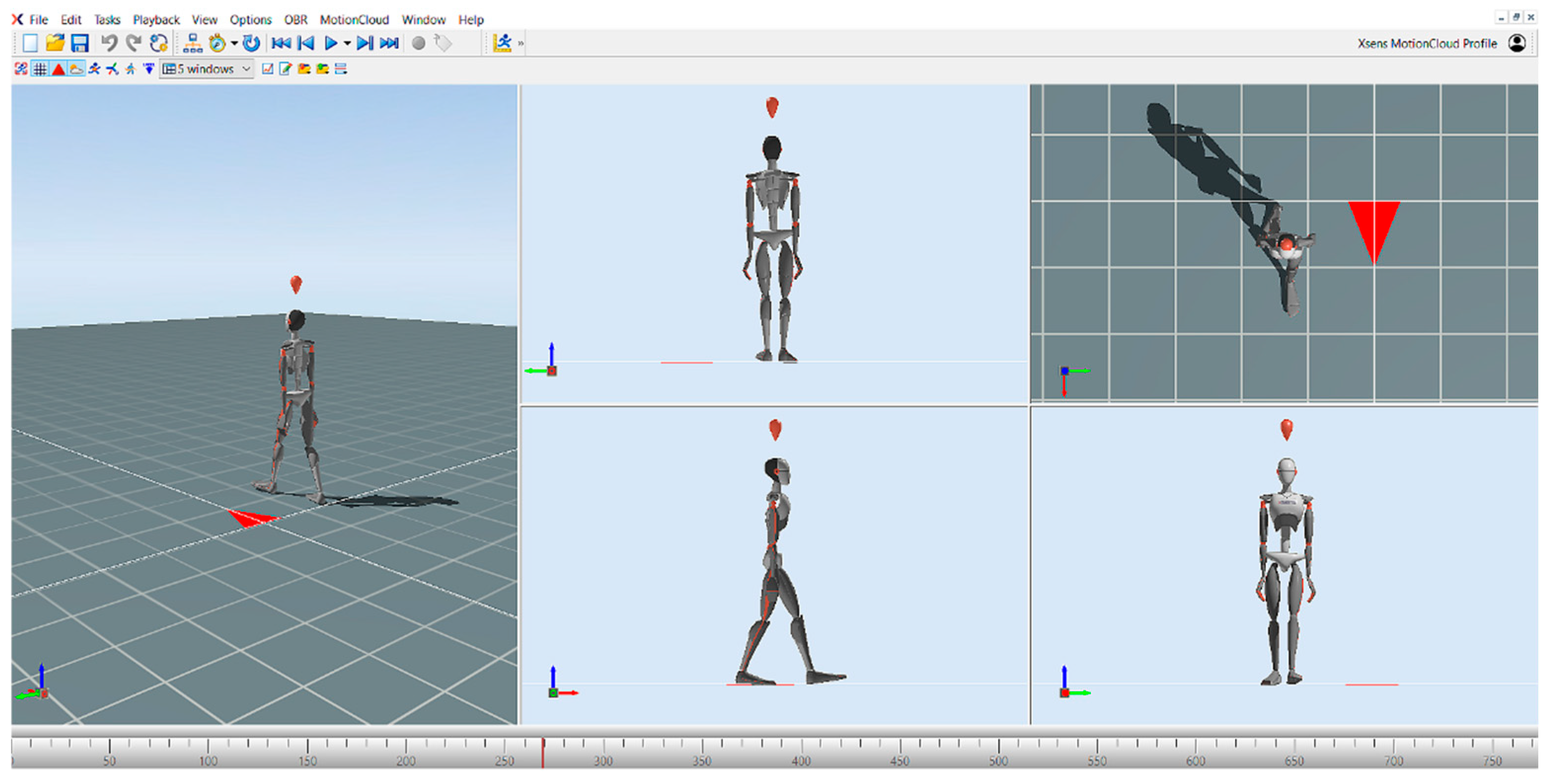 Figure 1). The MVN Awinda motion capture system consists of a total of 17 inertial measurement units (IMUs), which include accelerometers, gyroscopes, and magnetometers. The sensors are placed at different predefined anatomical points on the body. These points are midfoot, medial surface of the proximal tibia, lateral surface of the proximal femur, sacrum, sternum, shoulder blades, lateral surface of the proximal humerus, distal forearm, back of the hand, and head. This layout accurately represents the body’s motion in three-dimensional (3D) space and provides a high level of temporal and spatial accuracy during motion capture. After the sensors have been successfully attached, the subject’s anthropometric data must be provided to the software prior to the calibration process. In our test, the body height and the inside foot height were entered, from which the software calculates the limb lengths. This data is important for the software to accurately simulate the anatomy and mechanical behavior of the body. The calibration process consists of two phases: a static resting position, followed by a short predefined movement. There are two types of static calibration: the T-pose and the N-pose. In the T-pose, the subject keeps the arms extended horizontally and the legs parallel. In the N-pose, the subject remains in a natural standing position, allowing the system to calibrate the relative position of the sensors directly from the resting position. The second stage of the calibration was the dynamic calibration, during which we asked the patients to turn around and walk for a short time. The walk was also performed for a few seconds in order to allow the system to calibrate the relative position of the sensors and the movement patterns of the different segments of the body. After the walk, the initial position was resumed and held for approximately 1 min. After successful calibration, the gait analysis was started. During gait analysis, a 15 m section was pre-measured, which each patient had to complete without an assistive device. Before recording the walk, the subjects were instructed to walk at a comfortable walking speed at their own pace on the measured course. This allowed us to map the individual movement patterns of the participants and subtle movement variations. The MVN Analyze software then processes, analyses, and displays this data in real time, enabling accurate movement analysis [