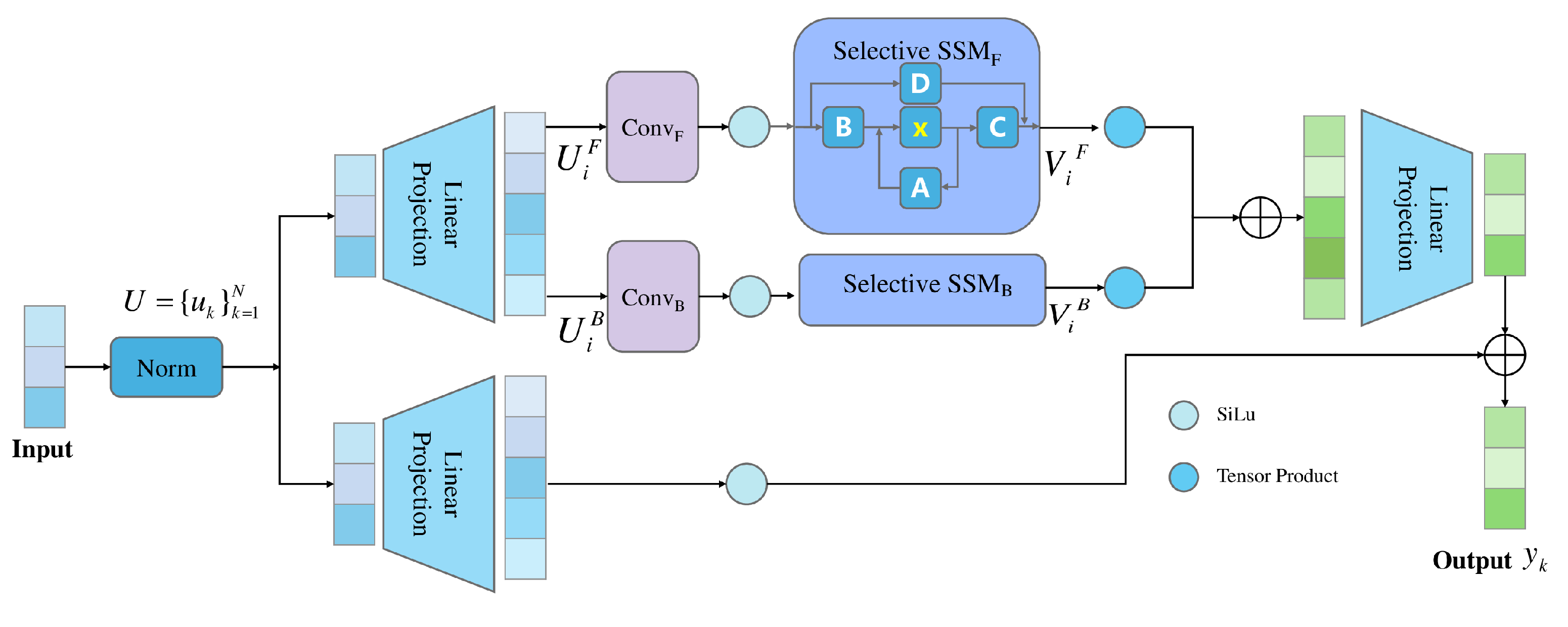 34] provides a promising alternative. Based on the selective State Space Model (SSM), Mamba integrates a continuous-time dynamical system with discrete-time recurrence, enabling efficient and expressive sequence modeling. Its selective scan mechanism adaptively controls the flow of critical information while suppressing irrelevant signals, enhancing both modeling robustness and computational efficiency. Mamba has shown strong performance across tasks requiring fine-grained spatial and temporal modeling, including vein recognition [