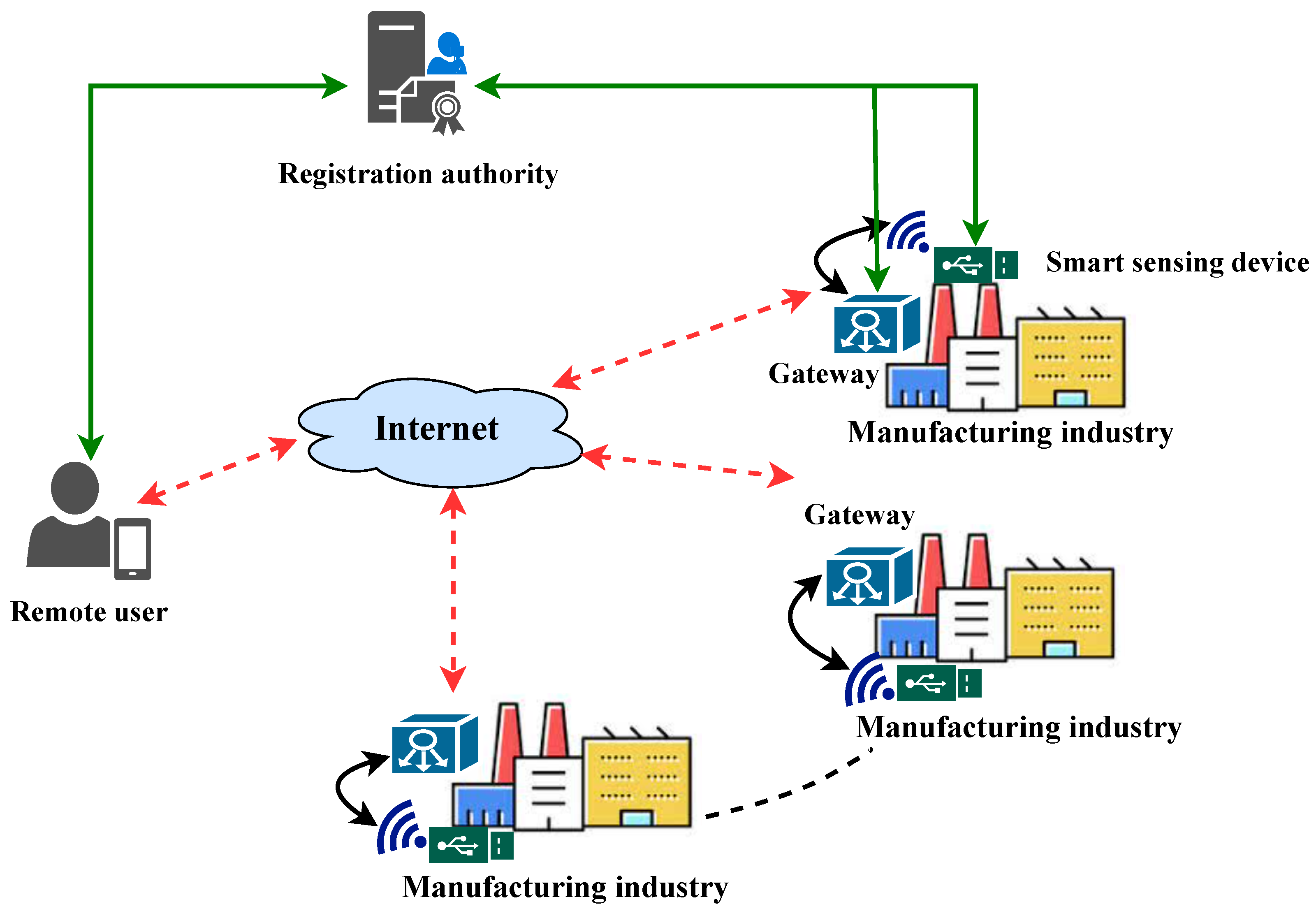 - Hammad, M.; Badshah, A.; Abbas, G.; Alasmary, H.; Waqas, M.; Khan, W.A. A provable secure and efficient authentication framework for smart manufacturing industry. IEEE Access 2023, 11, 67626–67639. [Google Scholar] [CrossRef]
