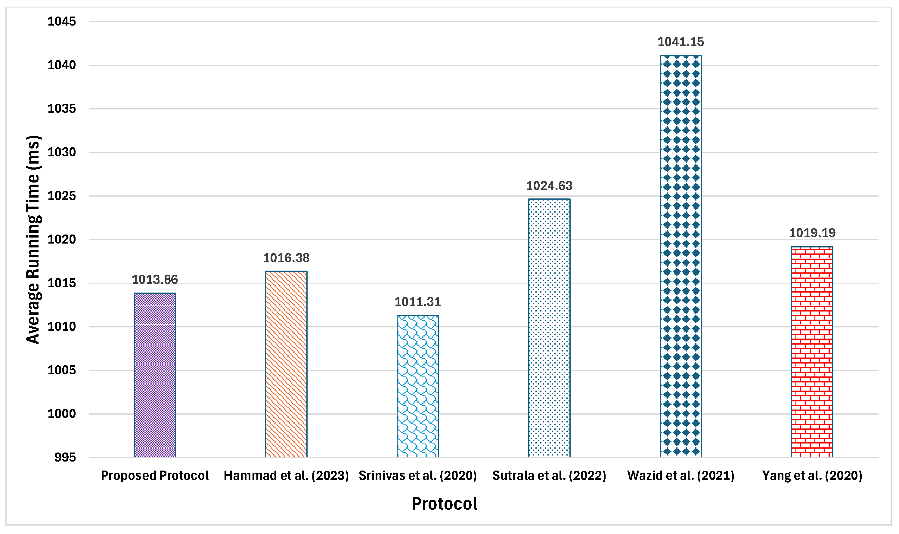 - A rigorous comparative performance evaluation was conducted to assess the security, functionality, communication overhead, and computational efficiency of the proposed protocol in relation to existing benchmarks. The study clearly demonstrates the proposed protocol’s superior efficiency and enhanced security features compared to existing protocols.