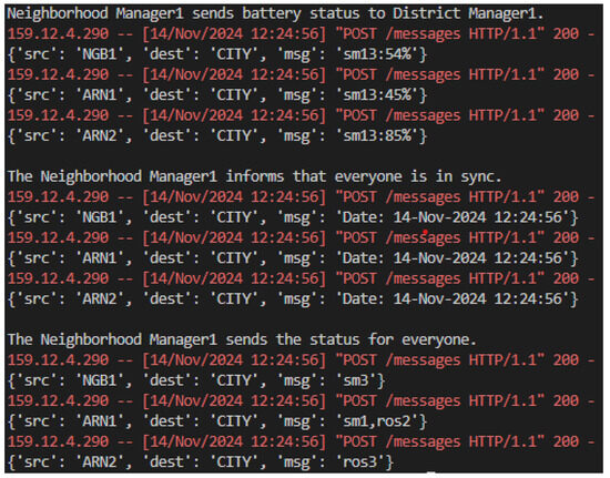 Each ARN at a given layer (building, neighborhood, district, city) reports its status to the node directly above it. This status report may includes data about resource usage, system health, and any issues detected within its domain, enabling upper-level nodes to gain a comprehensive overview of the network’s current stat or take specific actions. Higher-level nodes, upon receiving these status reports, assess the resource demands across their managed area and send actions down to the lower-level nodes. These actions can involve adjusting resource allocations, redistributing loads, or initiating conservation measures. The actions may be in the form of notifications (messages) to inform or guide lower levels, or automated interventions that optimize resource usage directly. Additionally, actions may also originate from even higher levels in the hierarchy if ARNs at a lower level are affected. In such cases, upper-level nodes can intervene to provide targeted support or adjustments, ensuring that local resource shortages or imbalances are promptly addressed by leveraging resources or adjustments from across the network. This cascading approach enhances resilience by allowing higher-level nodes to mitigate localized issues, ensuring stability throughout the entire HARN structure.