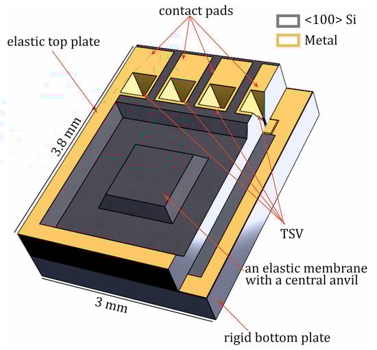 The flexibility of the TSV fabrication process also allows for the placement of TSVs on the backside of the base plate with minimal additional effort. This permits electrical isolation of the contact pads from the sensing medium when necessary. This adaptability, coupled with the use of dry etching instead of anisotropic wet etching, enables the production of sensors with compact dimensions and the customization of membrane structures to suit various load conditions. Furthermore, silicon structuring techniques are well established, standardized, and straightforward, making the manufacturing process more efficient.