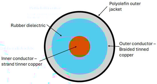 Diagram of a prototype coaxial cable designed for enhanced TDR capability through inclusion of a compliant rubber dielectric.