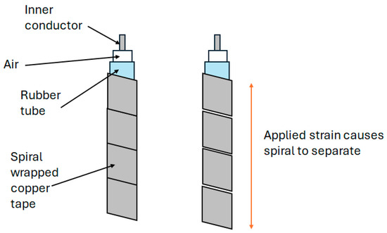 - Several published reports describe the use of helical wound outer conductors as a technique to induce a change in outer conductor topology with strain [7,9,47,71,72]. A lot of this work focused on crack detection in reinforced concrete beams. In 2004, Chen et al. tested a prototype coaxial cable sensor constructed with helically wound adhesive copper tape forming the outer conductor (Figure 8) [7].