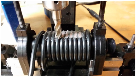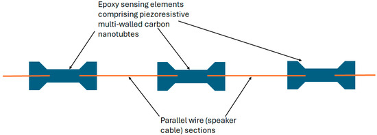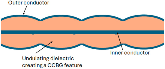 Through winding two parallel conductors helically around a central silicone core, a different approach to harnessing the change in topology to increase the TDR coaxial cable’s sensitivity to strain was researched [60,74]. This alternative configuration is illustrated in Figure 10. The work concluded that this different ‘coaxial’ design could be used for the distributed monitoring of deformation.