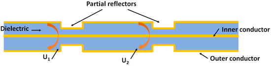 Coaxial cables and optical fibers follow similar principles of electromagnetic theory and signal propagation, albeit at different frequencies of the electromagnetic spectrum. Similar techniques developed for DOFSs can be applied to the medium of coaxial cables. However, coaxial cables are advantageous as they are more robust, can withstand larger strain, and present a lower cost [15,21,45,46]. The coaxial configuration of the conductors also provides shielding from electromagnetic interference [48,49].