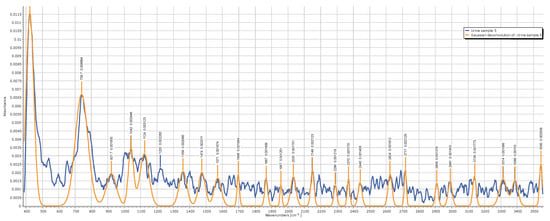 The analysis of the five urine spectra with the developed system demonstrates consistency and sensibility to variations in compound concentrations in urine. Future work will involve expanding the dataset to include urine samples from healthy and unhealthy individuals, as well as validating the system’s performance in detecting clinically relevant biomarkers.