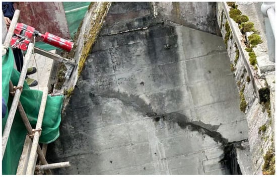In recent years, China’s water conservancy engineering construction has made remarkable achievements, and the design and safe operation of a large number of water conservancy projects indicate that China’s dam engineering technology has reached the international advanced level as a whole []. However, with the gradual increase in the operation time of water conservancy projects, coupled with changes in external factors and frequent occurrence of various natural disasters, a large number of concrete embedded components in water conservancy projects have experienced cracking and damage, seriously restricting project safety []. For example, during the safety appraisal of Longtoushan Reservoir, it was found that the dam body had multiple cracks and severe leakage []. Cracks parallel to the dam axis appeared in Yunzhu Reservoir, posing a great threat to the safe operation of the dam []. Therefore, regular safety inspections of reservoirs are essential. At the same time, China’s massive water conservancy projects have posed new challenges in detecting dangerous reservoirs [,].