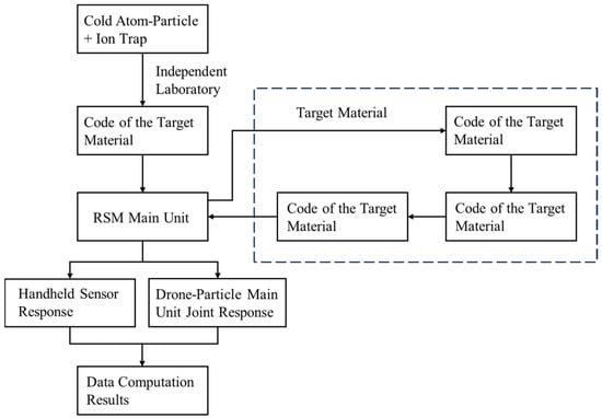 The RSM-II measuring particle detector (Figure 5) is employed for the detection process, enabling the precise emission of quantum particles, such as photons or neutrons, into the dam structure. Utilizing the dual wave and particle properties of quantum particles, interactions between particles and structural cracks result in phase changes in the quantum particle wave function at the crack edges. These changes create a distinctive interference pattern, which influences the signal characteristics captured by the detector. By conducting a high-precision analysis of the collected quantum signals, critical parameters, including the crack’s specific location, depth, and shape, can be accurately determined []. The schematic diagram of the working principle of the particle detection device is shown in Figure 6.
